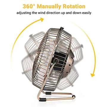 EasyAcc 6 Inch USB Desk Fan, 360°Rotation Small and Quiet,Powerful Portable Strong Airflow,Mini Metal Personal Cooling Fan with 2 Speed for Home Office,Bronze(USB POWERED ONLY)