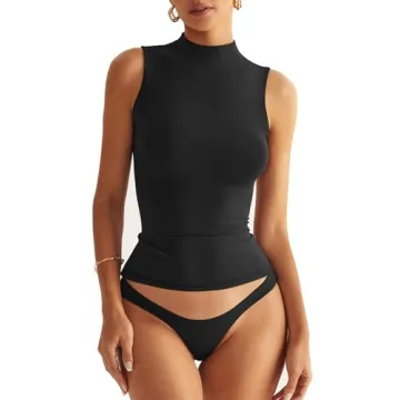 EasyGala Women Sleeveless Mock Turtle Neck Double Lined Top