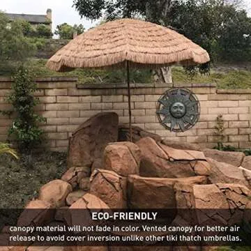 Unlike many traditional canvas umbrellas that fade and wear out over time, the EasyGo Tiki Umbrella's thatched design resists discoloration and deterioration due to elements. Competitors might offer similar sizes, but the unique look and sturdy build of this umbrella truly set it apart. Customers have noted that while other umbrellas may struggle against the wind, the EasyGo version remains steadfast, providing lasting beauty and functionality.