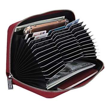 Easyoulife Womens Genuine Leather Credit Card Holder Wallet RFID Secure 36 Slots (36 Card Slots - Wine Red)