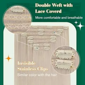 Easyouth Blonde Hair Extensions Real Human Hair Clip in Hair Extensions White Blonde Human Hair Extensions Clip ins Remy Straight Hair for Women Hair Extensions Clip ins 20 Inch 7 Pcs 120G
