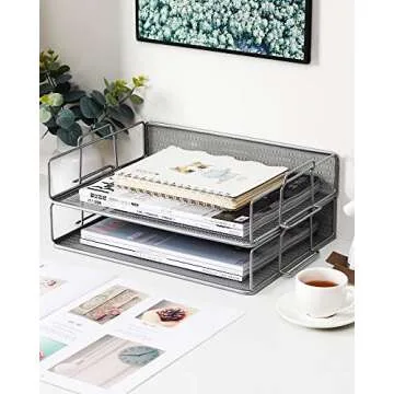 EasyPAG 2 Tier Stackable Letter Tray Desk Organizer | Stackable Paper Tray Organizer | The Mesh Collection ,Silver