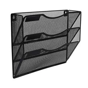Show more The Mesh Metal Wall Hanging File Organizer is the ultimate tool for anyone striving for an organized and efficient workspace. With its durable metal construction, this file organizer is designed to withstand the test of time, making it perfect for both home and office use. Offering a chic and modern aesthetic, it seamlessly blends into any decor while serving a practical purpose. This organizer is thoughtfully designed with three vertically arranged pockets, tailored perfectly for letter-sized files, folders, and documents. It allows for effortless organization of paperwork, ensuring you can find what you need without the dreaded clutter.