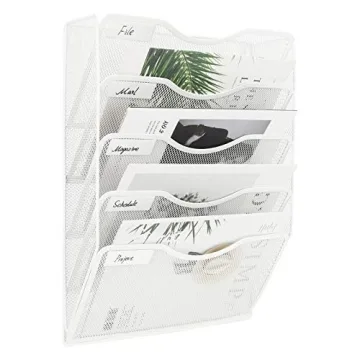 Show moreIntroducing the EasyPAG Wall File Holder, a perfect blend of practicality and style designed to declutter your workspace. This sophisticated mesh office letter-sized hanging paper rack is crafted with durable metal construction that ensures longevity while adding a modern flair to any environment. With its clean lines and minimalist design, this organizer seamlessly integrates into your home office, classroom, or business setting, allowing you to keep your important documents, mail, and files accessible yet out of the way. Measuring 17 x 13.1 x 3.75 inches, it's compact enough to fit in small spaces, yet efficient with its 5 vertically arranged pockets, making document storage a breeze.