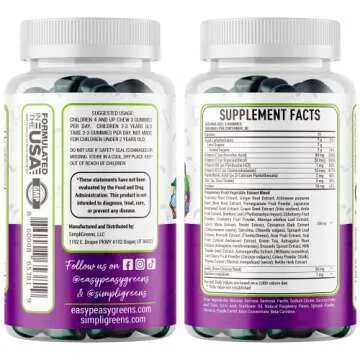 EasyPeasyGreens Daily Veggie Gummies for Kids - 90 Greens Gummies - Helps Picky Eaters Get Their Veggies in - Made with 10 Real Vegetable Extracts and 100% Vegan