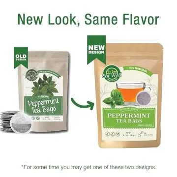 Eat Well Premium Foods Peppermint Tea Bags, 100 bags Bulk Size 6.7 oz, 100% Natural Peppermint Leaves Tea, Tea for Home or Office, Herbal Tea Bags, Herbal Tea Gift, 100 Herb Tea Bags in Re-Sealable Pack