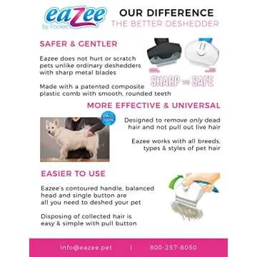 Eazee by Foolee Dog DeShedding Brush | Patented Dog Brush with NO Sharp Blades | Compatible with All Hair and Fur Types (Large, Red)