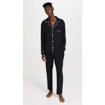 Show moreExperience comfort and luxury like never before with the Eberjey Men's William Modal Long PJs. Crafted from a lightweight jersey fabric, these pajamas are designed for the modern man who values both style and comfort. Featuring notched lapels and a refined button placket, these PJs offer a sophisticated look that seamlessly transitions from bedtime to lounging around the house. The contrast piping adds a touch of elegance, ensuring that you not only feel good but also look good, whether you're hosting guests or relaxing after a long day. With a thoughtful length of 25.5 inches and a rise of 12.5 inches, these pajamas are tailored to provide an optimal fit. The long sleeves keep you cozy, making them perfect for chilly nights.<\/p> Less