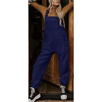 Ebifin Women's Fleece Warm Overalls Winter Loose Casual Jumpsuits with Pockets
