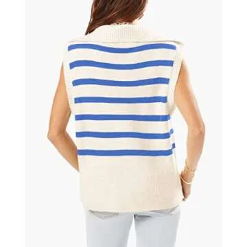 Ebifin Womens Striped Zipper Sweater Vest Tank Tops Lapel Summer Sleeveless Pullover Casual Lightweight Knit Top Blue