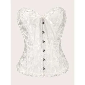 Ebinbum Corset Tops for Women White Women's Lace Up Boned Overbust Waist Cincher Bustier Lingerie Bodyshaper Top Bodysuit M