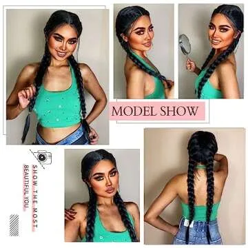 Show more Discover a new version of yourself with the stunning Ebingoo Double Braids 2 Natural Black Synthetic Braided Lace Front Wig. This exquisite wig is designed to combat the woes of hair loss and thinning hair, offering a glamorous solution that can last about six months. Made from 100% superior quality synthetic fiber, this wig provides a soft, shiny finish that is not only tangle-free but also shed-resistant, ensuring you look your best every day.