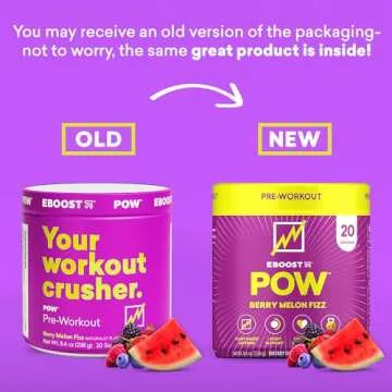 EBOOST POW Natural Pre Workout Powder - 20 Servings - Berry Melon Fizz - Pre Workout Supplement for Performance, Joint Mobility Support, Energy, Focus - Men & Women - Non-GMO, Gluten-Free, No Creatine