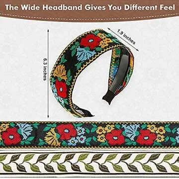 Show more Introducing the exquisite collection of embroidered headbands that blend style and comfort seamlessly. Crafted with love, these headbands feature four stunning colors designed to complement your unique outfits, whether it's for a casual day out or an elegant evening occasion. Each piece is carefully made from premium polyester fabric, ensuring a soft touch and a smooth surface that feels lightweight and comfortable against your scalp.