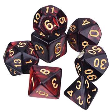EBOOT 7-Die Polyhedral Dice Compatible with DND Dice Set Dungeons and Dragons with Black Pouch (Red Black)