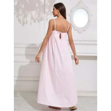 ebossy Women's Summer Backless Tied Spaghetti Straps Casual Loose Maxi Dress with Pockets (L, Pink)