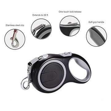 EC.TEAK Retractable Dog Leash, 26 Foot Dog Walking Leash for Medium Large Dogs up to 110lbs, One Button Break & Lock, Heavy Duty No Tangle, Large