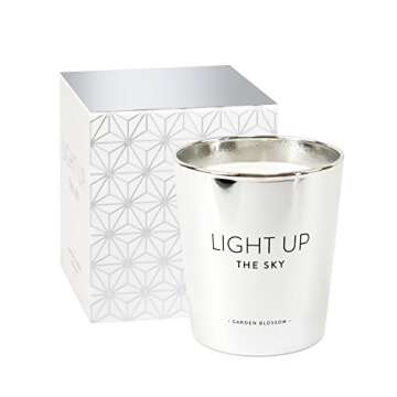 Show more Discover the enchanting aroma of the Eccolo Lily of The Valley Jasmine Clove Musk Scented Soy Wax Candle, exquisitely hand-poured in Spain and crafted from all-natural, vegan, kosher soy wax. This elegant 7-ounce candle not only fills your space with delightful fragrances of floral notes but also adds a touch of sophistication to your décor. Its sleek metallic silver finish glass jar is adorned with an inspiring quote that reads “LIGHT UP THE SKY,” making it not just a source of light but a source of inspiration.