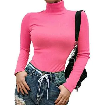 ECDAHICC Women's Turtleneck Rib Long Sleeve Fluorescent Pullover Sweatshirt Top(PI,S) Pink