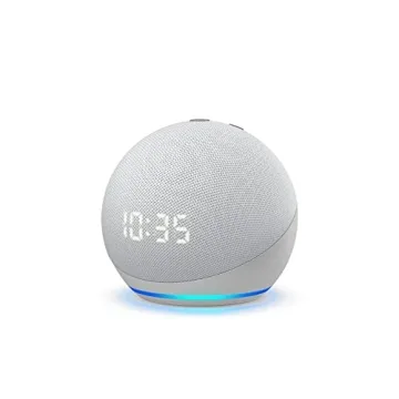 Show moreStep into the future of convenience with the Echo Dot (4th Gen) with Clock, hailed as Amazon's most popular smart speaker. This sleek gadget not only enhances your space with its Glacier White finish but is perfectly designed to fit seamlessly into your everyday life. Featuring an advanced LED display, it allows you to easily view the time, alarms, and timers with just a glance. Say goodbye to fumbling for your phone late at night; a simple tap on the top offers a snooze feature for those much-needed extra minutes of sleep.
