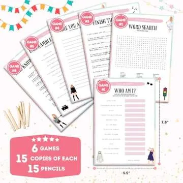 Echoglimmer Taylor Party Favor Games Merch - 6 Games for 15 Guests Taylor Party Favors, TS Party Supplies Double Sided Party Games Cards with 15 Pencils, Birthday Party Favors Decorations