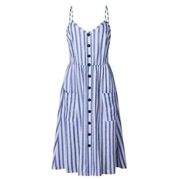 ECHOINE Women Blue White Stripes Midi Dress for Beach with Strap