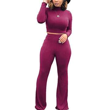 Show more Discover elegance and versatility in the ECHOINE Women's 2 Piece Outfits featuring a stylish sweater jumpsuit designed for the modern woman. This chic set includes a long-sleeve crop top paired with high-waist skinny pants, both crafted from high-quality fabric that offers both comfort and a flattering fit. The deep purple hue adds a pop of color to your wardrobe while effortlessly transitioning from day to night. With its figure-hugging design and contemporary style, this outfit is perfect for any occasion, guaranteeing you’ll stand out wherever you go.