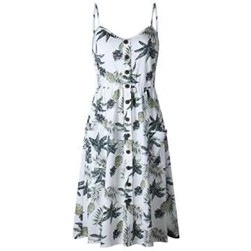 ECHOINE Women's Summer Floral Pineapple Boho Midi White Dress Plus Size