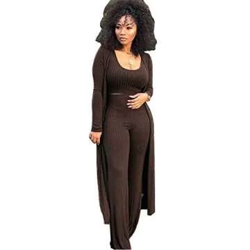 Show moreIntroducing the ECHOINE Women Sexy 3 Piece Outfits – the perfect blend of style, comfort, and versatility! This stunning ensemble features a chic crop top, a stylish long kimono cardigan, and flattering bodycon pants. Crafted from premium cotton knitted material, this outfit is soft to the touch and exceptionally breathable, ensuring you feel comfortable even on warmer days. The solid color design offers a timeless appeal, making it a staple for your wardrobe. The high waist long pants with a wide-leg cut provide both style and comfort, beautifully complementing the cropped tank and open-front cardigan, allowing you to showcase your unique fashion sense while feeling effortlessly chic.