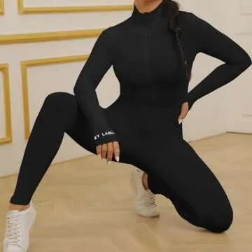 ECHOINE Womens One Piece Bodycon Jumpsuit -Sexy Long Sleeve High Waist Embroidery Zipper Romper Clubwear