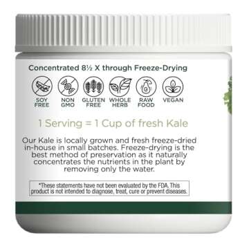 But what does the freeze-dried kale look like? You’ll be pleased to find a vibrant green powder that not only retains but emphasizes the health benefits of this mighty vegetable. Incorporating this product into your routine is effortless. Mix it in your morning smoothie, blend it with juice, or even stir it into your soups for an added boost without the hassle of preparation or spoilage associated with fresh kale. It’s the perfect solution for those with busy lifestyles!