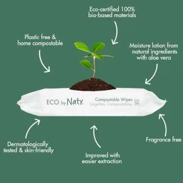 Eco by Naty Aloe Vera Baby Wipes – Plant Based Wipes, Compostable Baby and Newborn Hypoallergenic Wipes, Great for Baby Sensitive Skin (672 Count - 12 packs of 56)