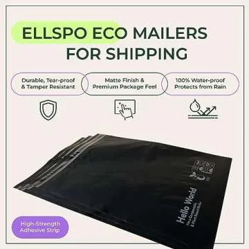 Eco Mailers by Ellspo Eco | 10x13 inch Certified Compostable Poly Shipping Bags, Pack of 50, Modern Matte Black Color, Sustainable Packaging Supplies