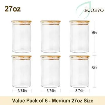 EcoEvo Glass Jars with Bamboo Lids (27oz in 6 Pack), Glass Food Jars and Canisters Sets, Glass Food Storage Jars with Airtight Lids, Glass Canisters with lids, Glass Pantry Jars, Glass Jars with Lids.