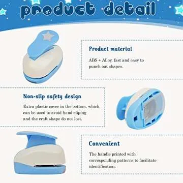 Crafted by a reputable brand known for quality and innovation, this set features three different star sizes (0.3'' / 0.63'' / 1'') to suit any project. Constructed from durable plastic and equipped with a stainless steel cutting blade, it guarantees smooth and precise cuts every time. The ergonomic design makes it comfortable to use, ensuring that kids can punch out stars without tiring their little hands.