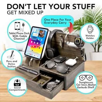 EcoLeafy Dot Nightstand Organizer- Wooden Rustic Bedside Organizer for Cellphone, Watches, Sunglasses & Accessories- Unique Gifts for Dad or Men Who Have Everything