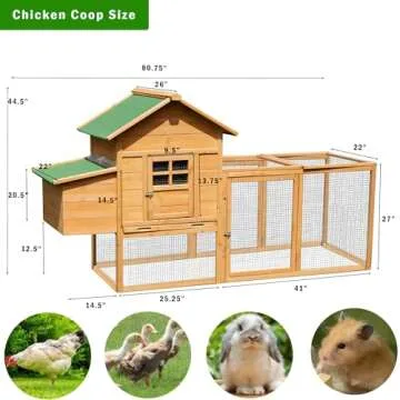 ECOLINEAR 80” Chicken Coop, Waterproof Wooden Hen House for 2-4 Chickens, Outdoor Chicken House with Nesting Box, Removable Tray, PVC Cover, Run, for Garden Backyard Cage