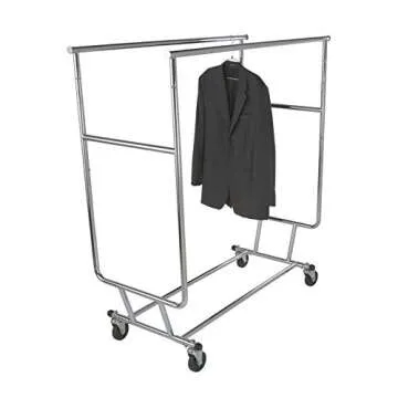 Econoco Double Hangrail Rolling Clothes Rack- Heavy Duty Collapsible Clothing Rack, Commercial Grade Clothing Display, Round Tubing Rolling Rack, Chrome
