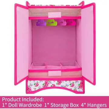 Ecore Fun 18 Inch Girl Doll Accessories Fashion Doll Closet Wardrobe for Doll Clothes and Accessories Storage Include Doll Closet and Hangers