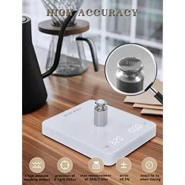 ECORELAX Digital Coffee Scale, Rechargeable Pour-Over Coffee Scale with Timer, Drip Espresso Scale with Touch Sensor Operation and Invisible Screen, Measures in Grams, Ounces, and Milliliter Black