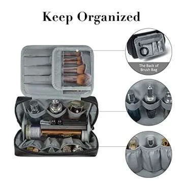 ECOSUSI Makeup Bag Travel Cosmetic Bag With Brush Slots Vegan Leather Zipper Pouch Bag Portable Make Up Organizer Toiletry Bag for Cosmetics, Toiletries, Accessories