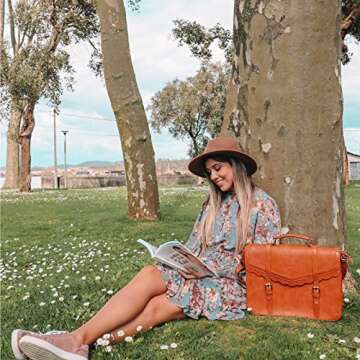 ECOSUSI Womens Briefcase Leather Messenger Laptop Work Bag for Women Fit 15.6" Laptop