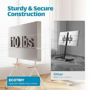 Show more This innovative mobile TV stand is designed to fit a range of televisions from 49 to 80 inches, making it a versatile choice for any space. Crafted with a robust design, the stand boasts a load-bearing capacity of 110lbs (50KG), surpassing many other portable options available in the market. With VESA compatibility ranging from 200*200mm to 600*400mm, you can securely mount your television with ease. What sets this stand apart is its rigorous testing; it has successfully passed a weight test that's four times its maximum load as certified by the UL/TUV Witness Lab.