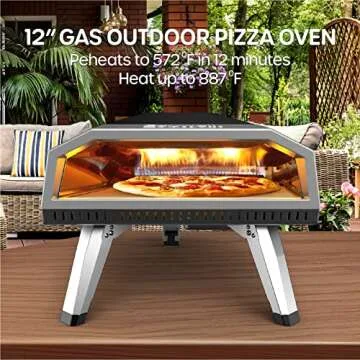 ECOWELL Gas Pizza Oven Outdoor, 12 Inch Portable Pizza Oven with Pizza Stone/Peel/Cutter, Infrared Thermometer and Waterproof Cover, Propane Outside Backyard Pizza Maker, Black