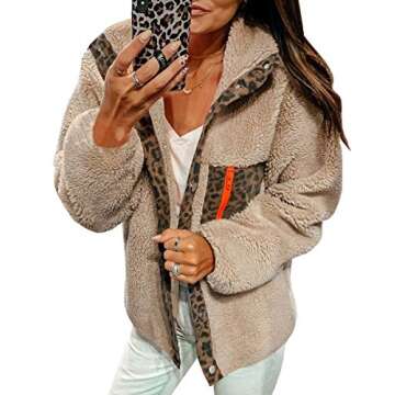 ECOWISH Women Fleece Leopard Coat - Cozy Winter Outerwear