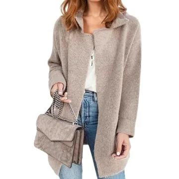 ECOWISH Women Open Front Cardigan: Fall Winter Long Sleeve Collared Midi Length Knit Sweater Casual Solid Coats with Pockets 410 Camel S