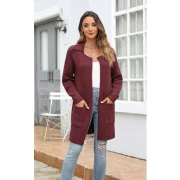 Show moreStep into comfort and style with the ECOWISH Women Open Front Cardigan, designed thoughtfully for the modern woman. This gorgeous knit sweater effortlessly combines warmth and elegance, making it your go-to garment for all-day wear during the spring, fall, and winter. Made from a soft and cozy fabric, this cardigan invites you to experience its comforting embrace while enhancing any outfit. The beautiful wine red color perfectly complements the seasonal palette, adding a pop of warmth to your wardrobe. Ideal for layering over your favorite tops or dresses, it’s a staple piece that brings versatility to your style.