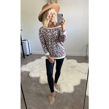 ECOWISH Women's Camouflage Print Casual Leopard Pullover Long Sleeve Sweatshirts Top Blouse Coffee Medium