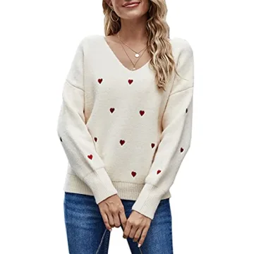 Show moreIntroducing the exquisite ECOWISH Women Valentine Heart Sweater: a delightful blend of fashion and comfort that will elevate your wardrobe this season! Perfectly tailored for style-savvy individuals, this V-neck pullover combines a charming heart embroidery design in a vibrant red hue with a soft beige backdrop, making it an ideal choice for Valentine’s Day and beyond. Crafted from a premium knit blend, this sweater offers unparalleled softness and warmth, ensuring you stay cozy while making a fashionable statement.