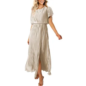 ECOWISH Women's Short Sleeve Dresses: Elegant Boho Maxi for Weddings & Parties